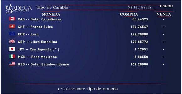 Tasas vigentes en el mercado cambiario cubano este domingo 11 de diciembre