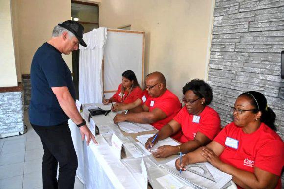 El Presidente de la República de Cuba y primer secretario del Partido Comunista de Cuba, Miguel Díaz Canel, participó este domingo en las elecciones nacionales del país.