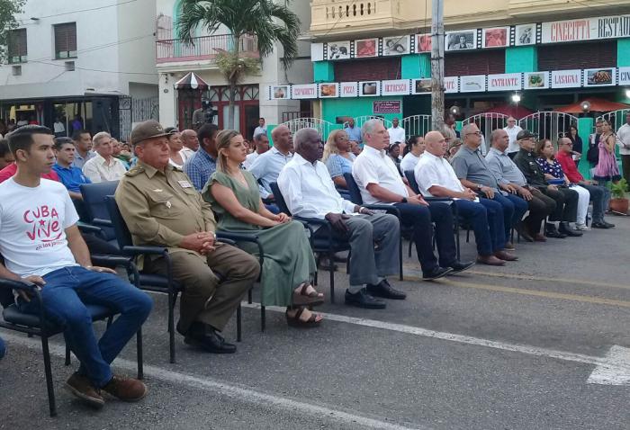 El acto estuvo presidido por el Primer Secretario del Comité Central del Partido y Presidente de la República, Miguel Díaz-Canel Bermúdez; Esteban Lazo Hernández, Presidente de la Asamblea Nacional del Poder Popular y Roberto Morales, secretario de Organización del Comité Central.