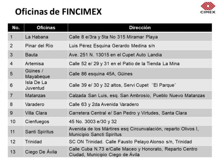 Se adjuntan las Oficinas de FINCIMEX habilitadas para el servicio de entrega de las Tarjetas Chip Recargables.