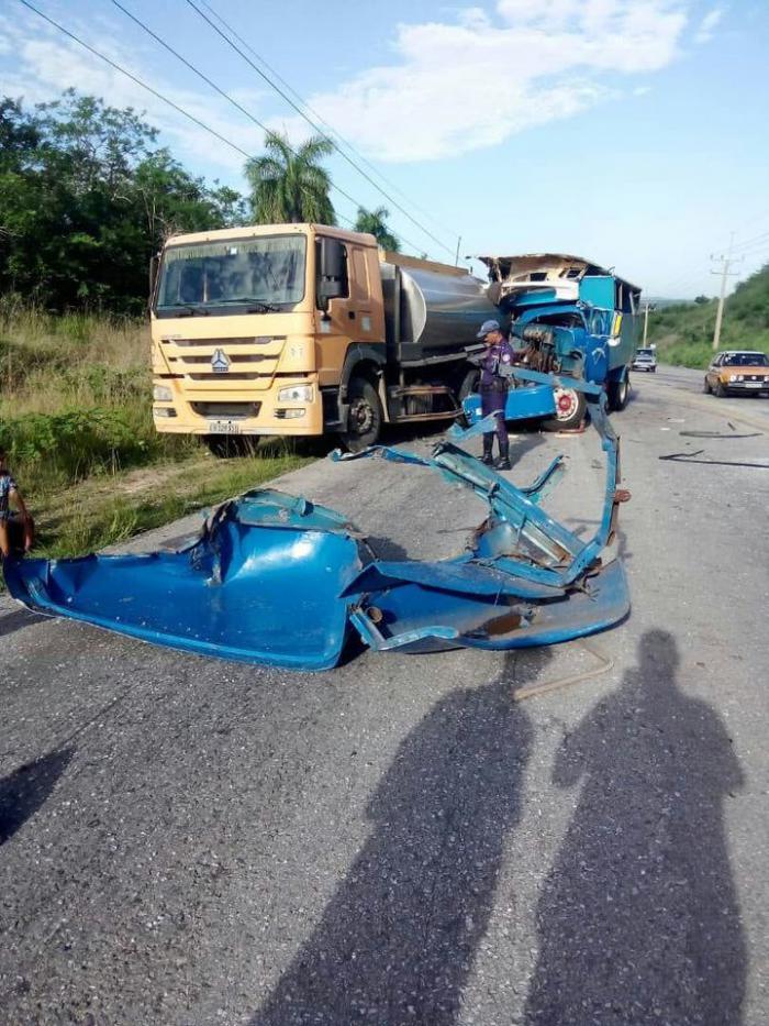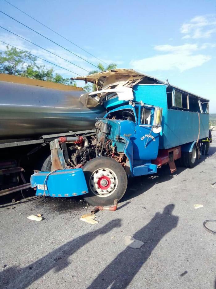Un lamentable accidente ocurrió la mañana de este 13 de junio en la Vía Blanca, a la altura de Puerto Escondido, Santa Cruz del Norte, Mayabeque, entre un camión cisterna y un camión de pasajeros que cubría la ruta Matanzas-Habana.