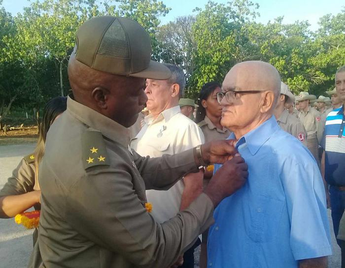 Una representación de combatientes y trabajadores civiles fueron reconocidos con la Distinción Destacados en la Preparación para la Defensa, así como los sellos conmemorativos 50 aniversario del EJT y 60 del inicio de la construcción del Partido en las FAR.