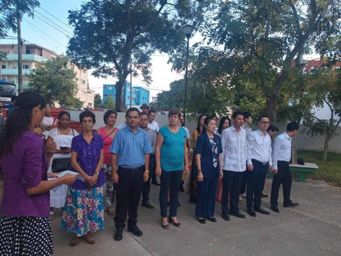 Truong Thi Ngoc Anh y Julia Durruty Molina, miembro del Secretariado Nacional de los Comités Defensa de la Revolución (CDR), depositaron una ofrenda floral ante la Tarja del Tío Ho. Esta es una de las actividades de la delegación del hermano país asiático, que asiste como invitada al X Congreso de los CDR, a celebrarse los días 27 y 28 en el Palacio de Convenciones de La Habana.