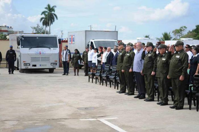Al acto político cultural efectuado en la UEB Especializada de Seguridad y Técnica, asistieron los miembros del Buró Político del Comité Central del Partido Comunista de Cuba, Manuel Marrero Cruz, primer ministro del Gobierno, y el General de División Lázaro Alberto Álvarez Casas, ministro del Interior.