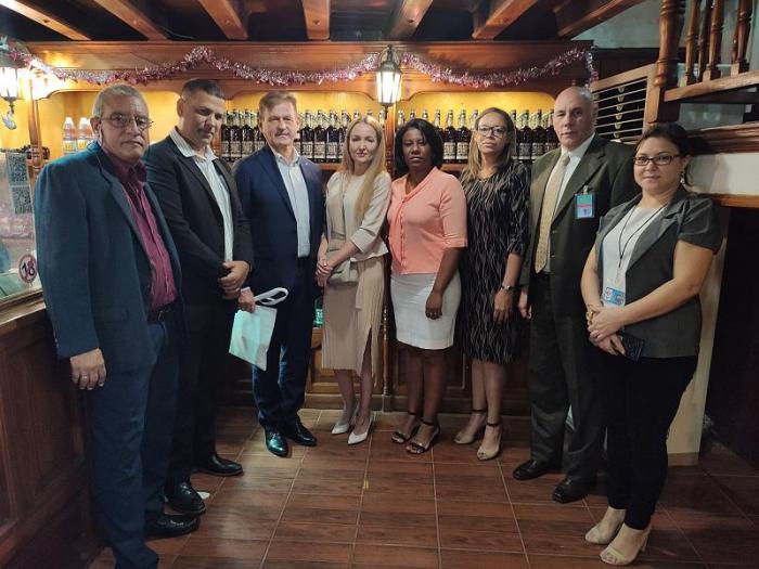 Al encuentro asistieron Vladimir Komlev, director ejecutivo y Evgeniya Egorenkova, jefa Departamento de Negocios Internacionales, ambos de NSPK Rusia. En representación de la parte cubana por el BCC, Alberto Javier Quiñones Betancourt, vicepresidente y Julio Antonio Pérez Álvarez, director general de Operaciones y Sistemas de Pagos; Greicher La Nuez Gambino, directora general de la institución financiera no bancaria, Servicios de Pago Red. SA y Yamil Hernández González, gerente general de Fincimex. Como parte de las actividades, se visitó la tienda Casa del Café “Mamá Inés” de la red Caracol para comprobar el funcionamiento de las tarjetas, resultando satisfactorias sus acciones de compra.