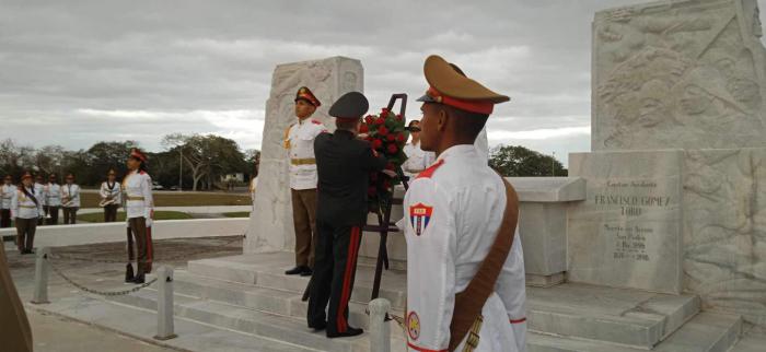 n el mausoleo "El Cacahual", el titular de Defensa de Belarus, depositó una ofrenda floral al lugarteniente general Antonio Maceo Grajales y su ayudante el capitán Francisco Gómez Toro.