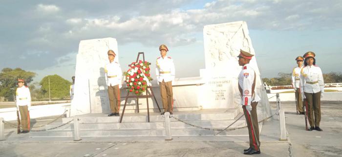 En el Mausoleo El Cacahual, el distinguido visitante y la delegación que le acompaña,depositaron una ofrenda floral al Lugarteniente General Antonio Maceo Grajales y su ayudante el capitán Francisco Gómez Toro.