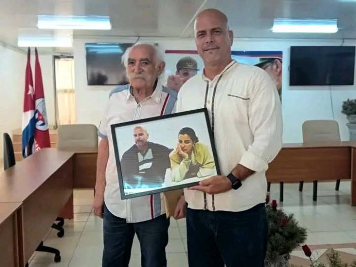 La comitiva entregó al Coordinador Nacional de los CDR un cuadro con una foto tomada a él y su esposa Adriana en septiembre de 2015 mientras participaban en la edición 80 de la tradicional fiesta del periódico francés "L Humanité". Realizaron además un donativo de juguetes y útiles escolares.