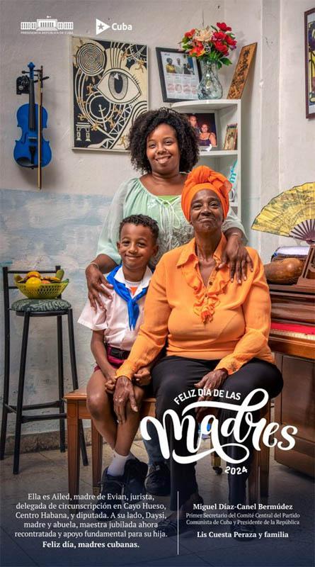 El presidente Miguel Díaz-Canel y otras autoridades de Cuba destacaron hoy las cualidades de las madres cubanas y las felicitaron en este día dedicado a agasajarlas, tradición que aquí sobrepasa la centuria.