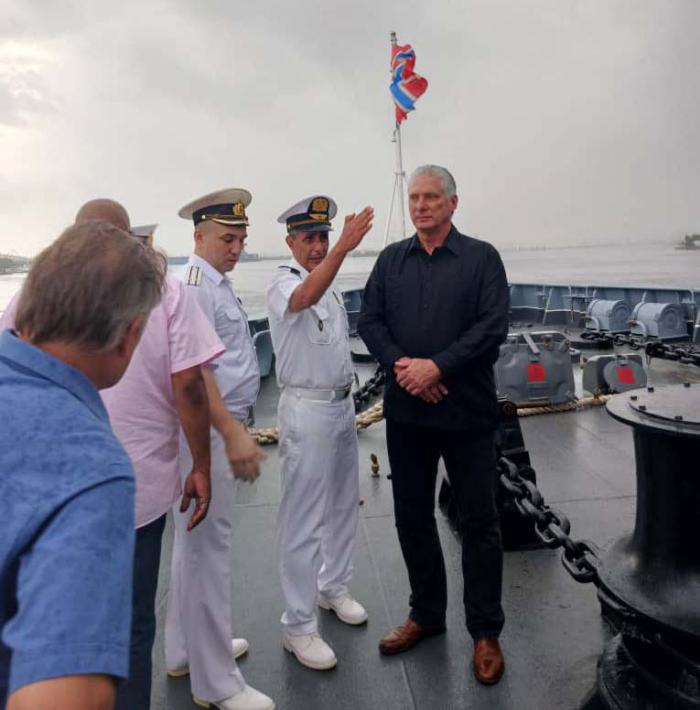 El presidente de Cuba, Miguel Díaz-Canel, visitó la fragata Admiral Gorshkov y la cubierta del submarino Kazán de la Flota del Norte de Rusia atracados en el puerto de La Habana. El mandatario expresó a los marineros rusos su agradecimiento por la oportunidad de visitar las embarcaciones.