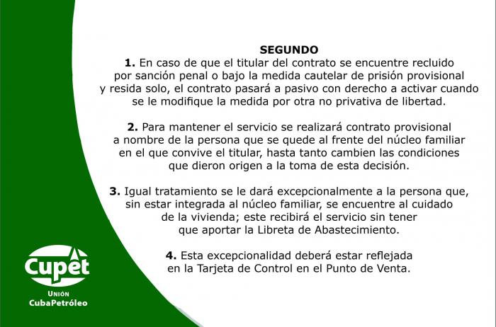 Atendiendo a los cambios que se están llevando a cabo en nuestro país relacionados al uso eficiente de la energía y de manera particular con los combustibles y medios que se emplean para la cocción de los alimentos en los momentos actuales y el contexto social, relacionado con la salida del país de manera temporal, resulta necesario dar solución a aquellos asuntos relacionados con el servicio de Gas Licuado de Petróleo, por lo cual se realizaron adecuaciones al Reglamento para el servicio de gas licuado a la población, mediante la Resolución No. 18/2025 aprobada por el Director General de CUPET, Edrey Rocha González.