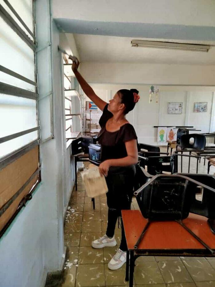 Tribuna de la Habana visitó la escuela primaria y secundaria básica Protesta de Baraguá de la localidad. Docentes y padres se encontraban trabajando en la limpieza y mantenimiento de las aulas, arreglo de los pupitres y mesas, pintura en las aéreas interiores, chapeo de las áreas y arreglo parcial de las instalaciones sanitarias.