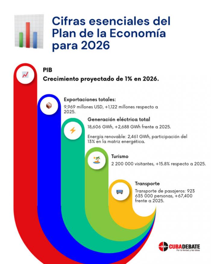 El ministro de Economía y Planificación, Joaquín Alonso Vázquez, informó que, bajo el precepto de manejar la crisis, mitigar los impactos de la guerra económica y lograr una gradual recuperación, el Plan de la Economía para 2026 reconoce las tensiones que continuarán impactando su ejecución, la necesidad de movilizar todas las reservas que puedan existir para incorporarlas, así como las potencialidades derivadas de las transformaciones que se llevan a cabo como parte del Programa de Gobierno para corregir distorsiones y reimpulsar la economía.