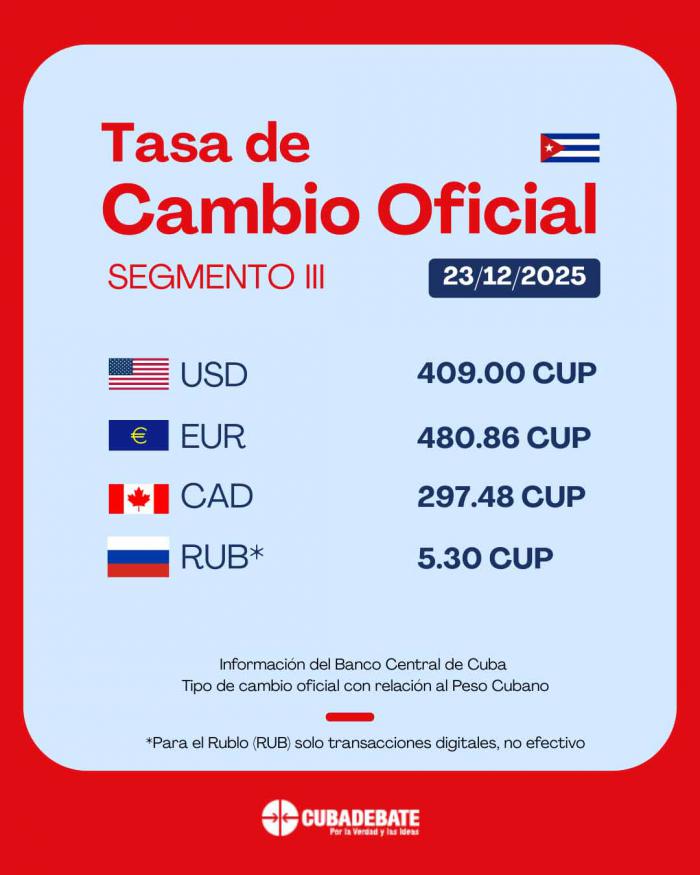 Tasa de cambio oficial del Banco Central, correspondiente al segmento III, para el martes 23 de diciembre de 2025.