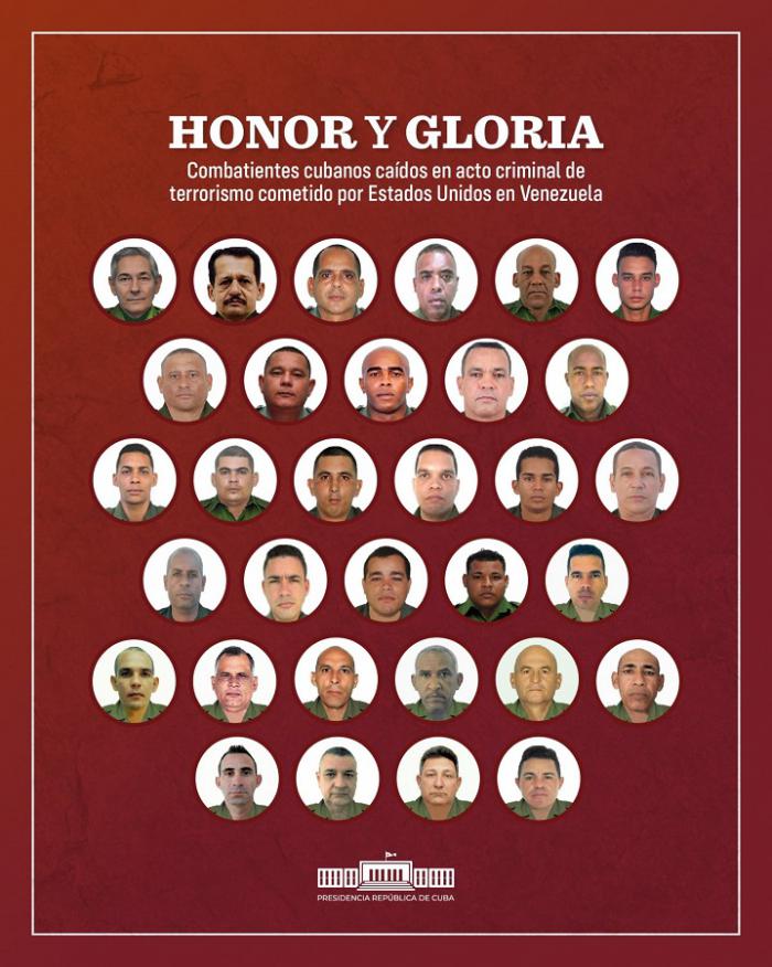 Los 32 cubanos caídos el pasado 3 de enero cumplían misiones en representación de las Fuerzas Armadas Revolucionarias y el Ministerio del Interior, a solicitud de instituciones homólogas del país sudamericano.