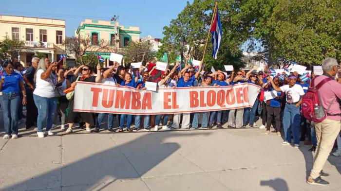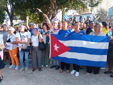 Un multitudinario acto en contra del bloqueo económico, comercial y financiero que el gobierno de Estados Unidos mantiene contra Cuba, tuvo lugar este martes 7 de abril en La Habana, convocado por la Federación de Mujeres Cubanas (FMC).