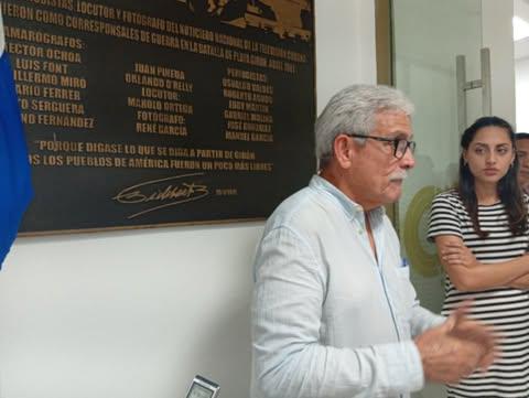 El acto tuvo lugar en la sede del Canal Caribe de la Televisión Cubana, donde se erige una tarja en homenaje a camarógrafos, periodistas, locutores y fotógrafos del Noticiero Nacional de la Televisión Cubana, quienes se mantuvieron como corresponsales de guerra durante la batalla de Playa Girón.