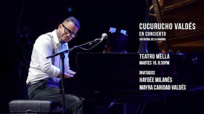 Para las 8:30 p.m. está fijado el concierto del pianista cubano Roberto Carlos “Cucurucho” Valdés en el teatro Mella de la capital cubana, como parte del programa colateral de la XIII Bienal de La Habana.