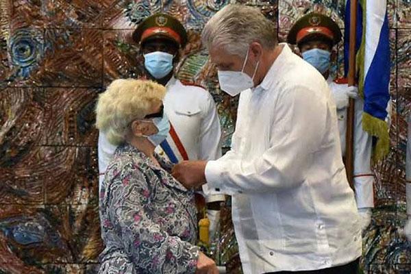 Cada detalle del momento en que el Presidente de la República de Cuba, Miguel Díaz-Canel Bermúdez, con admiración y delicadeza colocaba a la reconocida intelectual el tercer honor más alto que se confiere detrás de los títulos de Héroe de la República y de Héroe del Trabajo y que antes lo recibieran personalidades relevantes y emblemáticos como Salvador Allende, Thomas Sankara, Nelson Mandela y otros nombres significativos que dejaron una profunda huella en sus naciones y un ejemplo a seguir, en la historia mundial.