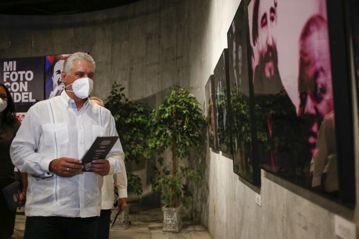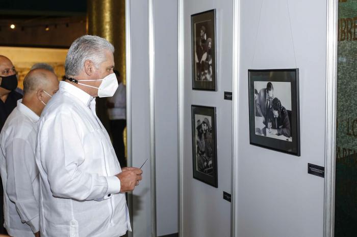 El Presidente de la República de Cuba, Miguel Díaz-Canel, asistió hoy a la inauguración de exposiciones fotográficas en el Memorial José Martí, creadas como homenaje al 95 cumpleaños del Comandante en Jefe Fidel Castro Ruz, en esta capital.