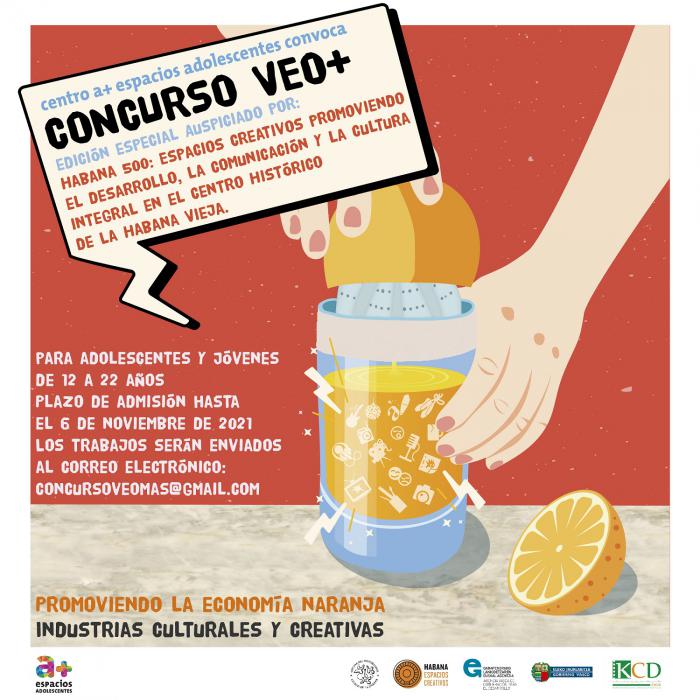 El Centro a+ espacios adolescentes de la Oficina del Historiador de la Ciudad de La Habana, con el apoyo del proyecto de cooperación internacional Habana 500: espacios creativos promoviendo el desarrollo, la comunicación y la cultura integral en el Centro Histórico de La Habana Vieja, convocan a la 3ra Edición del Concurso Veo +.