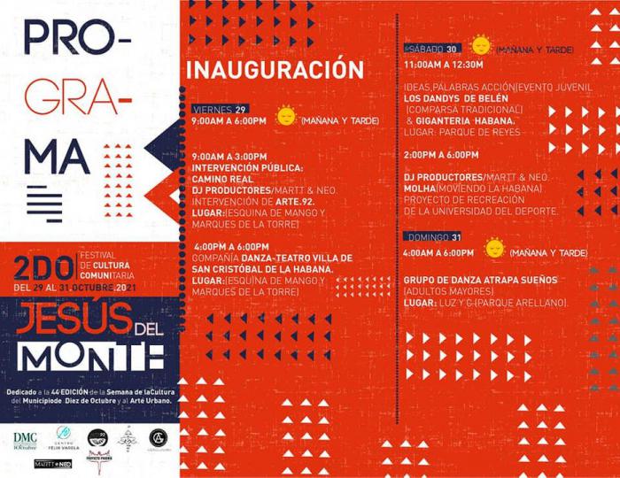 Las actividades iniciarán el día 28 de octubre a las 9:00 a.m. con el acto político-cultural Homenaje al Comandante del Pueblo, en la Casa natal Camilo Cienfuegos y en el Obelisco de la Escuela Especial Camilo Cienfuegos, a las 10:00 de la mañana. Ese mismo día y a esa hora será la inauguración de manera virtual, a través del grupo de Facebook Cultura Diez de Octubre.