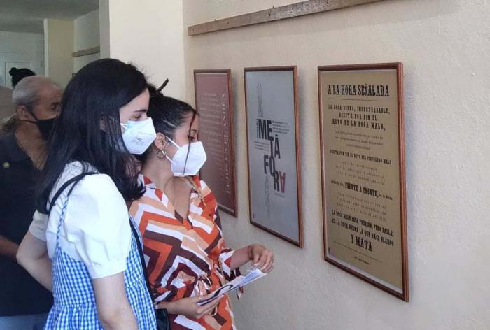 Con las notas de nuestro Himno Nacional, interpretado por la Coral Universitaria, comenzó el acto, amenizado también con los momentos culturales de Entalpía, grupo institucional de la UH, el Conjunto Folclórico de la Casa de Altos Estudios, así como, el Teatro Universitario de La Habana, grupo institucional insignia de la Universidad, que presentó un collage dedicado a la obra del poeta cubano Luis Rogelio Nogueras “Wichy”, con cuyos poemas en carteles con diseño tipográfico, los estudiantes y profesores del Instituto Superior de Diseño (ISDI) de la UH, se sumaron a la celebración de la puesta en marcha de la Librería Alma Mater, a través de la exposición colectiva de carteles El Cisne Salvaje, igualmente inaugurada en la jornada en este Centro Cultural en la que estuvo presente, dialogando con sus autores, Neyda Izquierdo Ramos Premio Nacional de Edición 2013, viuda de Wichy Nogueras.