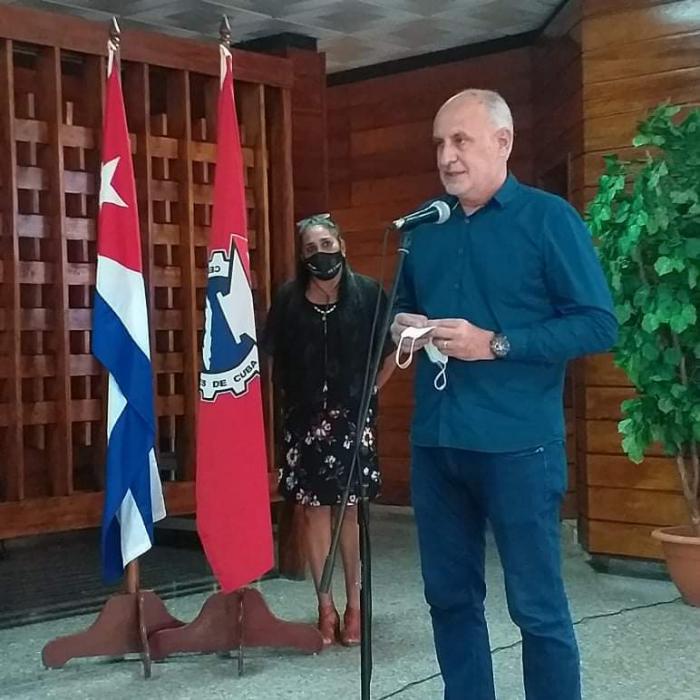 En el salón Indio Naborí de la Central Obrera Cubana se realizó el agasajo con motivo de la Jornada por el Día de la Prensa Cubana, al que asistieron Katia Rodríguez Ramos, secretaria general del Sindicato Nacional de los Trabajadores de la Cultura; Ricardo Ronquillo Bello, presidente de la Unión de Periodistas de Cuba (UPEC); y Alberto Núñez, director del Periódico Trabajadores.