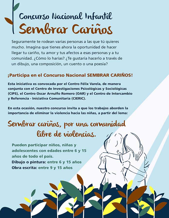 ¿Cómo lo harías? ¿Te gustaría hacerlo a través de un dibujo, una composición, un cuento o una poesía?, pregunta la convocatoria de este certamen, convocado por el Centro Félix Varela, de conjunto con el Centro de Investigaciones Psicológicas y Sociológicas (CIPS), el Centro Oscar Arnulfo Romero (OAR) y el Centro de Intercambio y Referencia-Iniciativa Comunitaria (Cieric).
