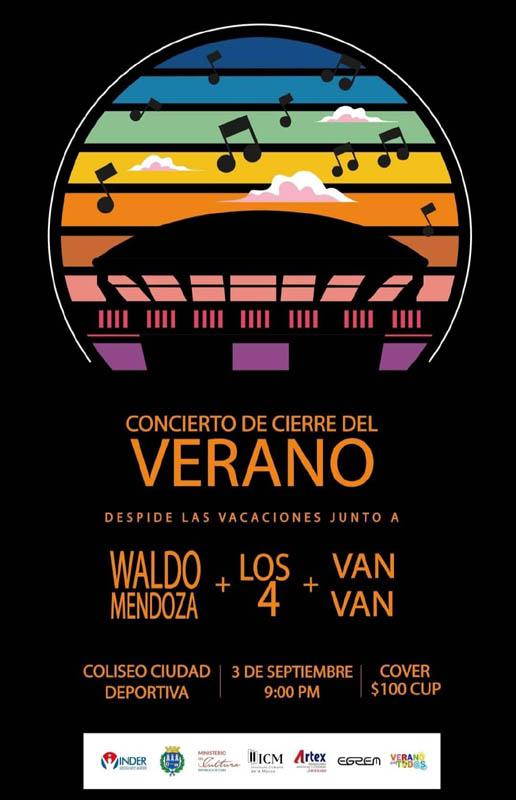 La Ciudad Deportiva acogerá el próximo 3 de septiembre, a las 9:00 de la noche, un concierto de cierre del verano que contará con la actuación del cantante Waldo Mendoza y las agrupaciones Los 4 y Los Van Van.