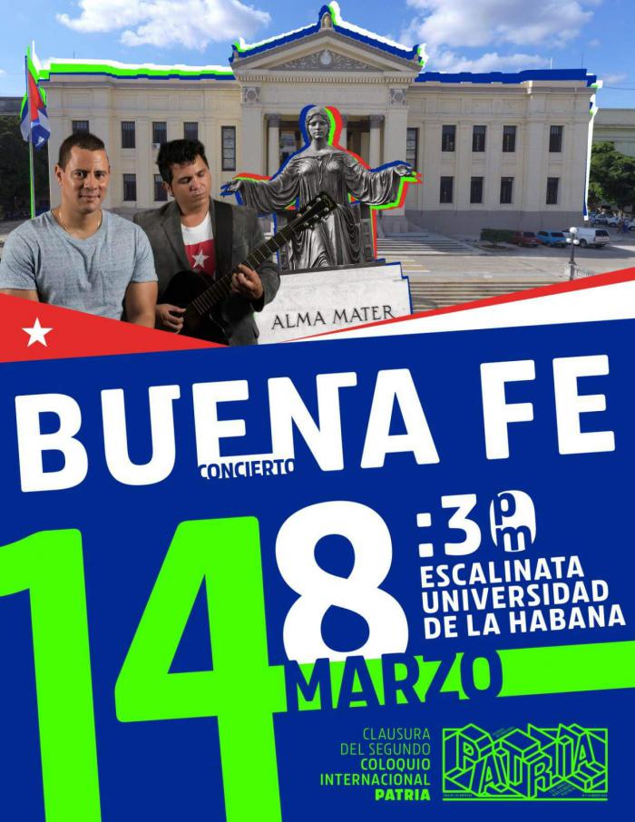 La reconocida agrupación Buena Fe reunirá a cientos de jóvenes en la histórica escalinata de la Universidad de La Habana, este 14 de marzo, un día histórico en el cual nuestro José Martí fundó el periódico Patria.