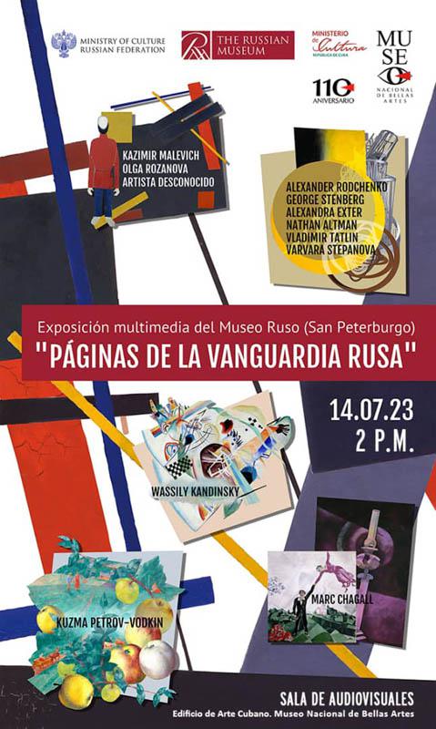 En tanto, en la Sala de Audiovisuales del propio edificio, está abierta la exposición "Páginas de la vanguardia rusa", la primera exhibición en formato digital de las obras de la colección del Museo Ruso en Cuba.