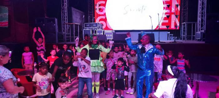 Ana Ivis y Gretel tienen 14 años y junto a más de un centenar de niñas, niños y adolescentes, disfrutaron de la fiesta que organizó el proyecto Cambula para los 13 hogares de menores sin amparo familiar de La Habana. Rieron con las ocurrencias de la payasa Melodía y cantaron y bailaron, acompañando -algunos desde el escenario-, a Waldo Mendoza.