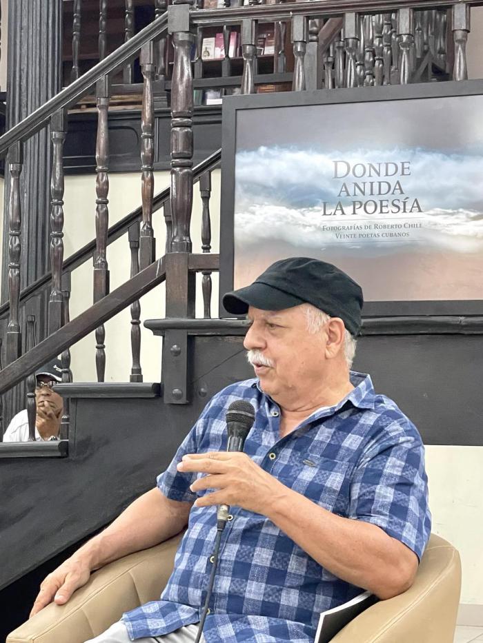 Sin embargo, no toda su creación fotográfica se enmarca dentro de la fotografía documental. Para él una imagen puede encontrarse cargada de poesía. Así quedó reafirmado en la tarde de este 17 de mayo, cuando la librería Fayad Jamís, ubicada en La Habana Vieja, acogió la presentación de su libro: “Donde anida la poesía, Fotografías de Roberto Chile-Veinte poetas cubanos”, que propone una fusión de poesía en lenguaje escrito y de poesía visual que caracteriza a la fotografía de autor.