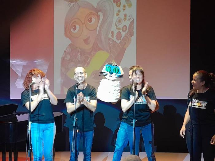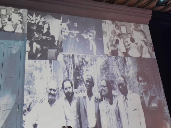 Con un sencillo pero emotivo espectáculo, integrantes de Teatro de las Estaciones, conducido por su director Rubén Darío Salazar, nos regalaron la poesía y la música de Teresita Fernández, y que contó también con la participación especial de la cantautora Rita del Prado. Al fondo, un bello dibujo de Iris Fundora que nos evoca a la trovadora, cantautora, guitarrista y compositora cubana, conocida como la “cantora mayor”.