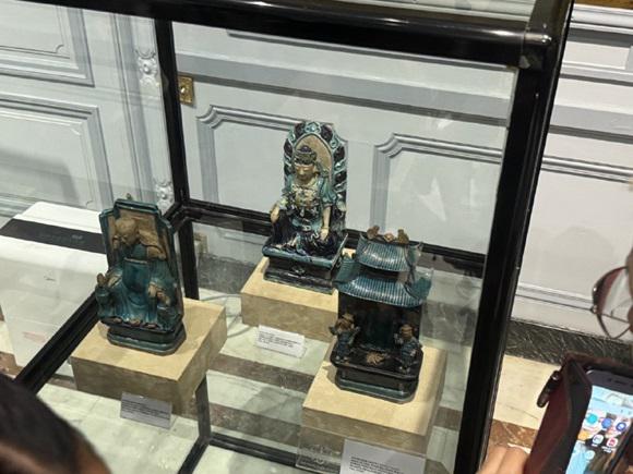 Porcelanas de esmaltes policromados, un vaso y hornos imperiales de la Ciudad de Jingdezhen, del Período Wanli (1573-1620); una figura escultórica de Guanyin, la Avalokitesvara, deidad suprema que encarna la compasión de todos budas; fragmentos de un plato de porcelana policromada, también del período Wanli y un buda de porcelana de esmalte blanco de la provincia de Fujian, son algunas de las piezas expuestas, a partir de una colaboración entre el Museo Nacional de Bellas Artes, el Gabinete de Arqueología y el Museo Casa de la Obrapía, estos dos últimos pertenecientes a la Oficina del Historiador de la Ciudad de La Habana.