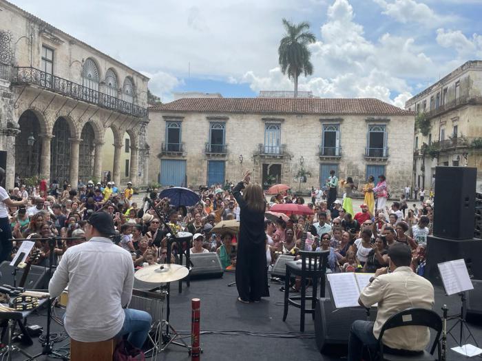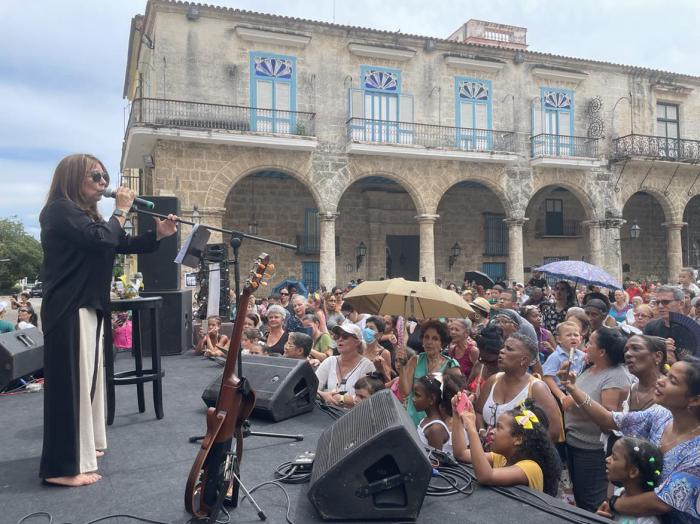 En la mañana de este sábado, la Plaza de la Catedral acogió un concierto de la cantautora cubana Liuba María Hevia. Esta presentación marcó el cierre de la Jornada de las Personas Adultas Mayores, en el Centro Histórico de la capital.