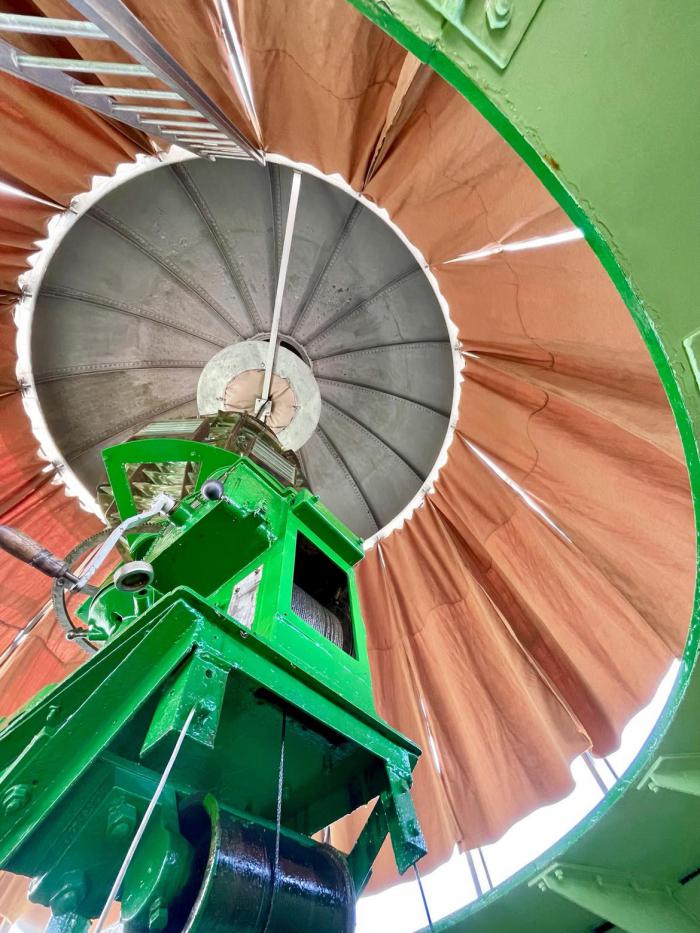 Su maquinaria de reloj mecánico permite la emisión de dos destellos blancos cada quince segundos.Foto: Marian Eugenia Serrano Estepa