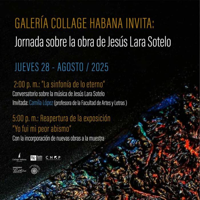 La Galería Collage Habana, del Fondo Cubano de Bienes Culturales, acogera el próximo jueves 28 de agosto una jornada dedicada a la obra polifacética del artista Jesús Lara Sotelo.