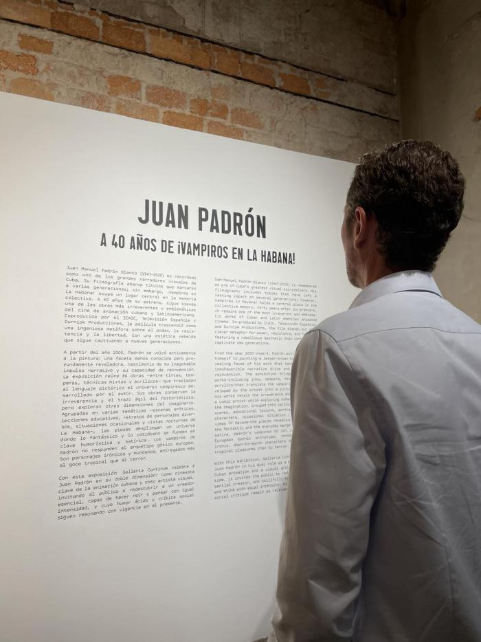 Pintura, animación y música: “la fórmula” perfecta para rendir tributo a Juan Padrón, a 40 años del estreno del filme “Vampiros en La Habana”. En la tarde de este 30 de agosto, la Galleria Continua, ubicada en Centro Habana, acogió la inauguración de una muestra que realiza un recorrido por la obra del destacado realizador cubano dedicada a esta película.