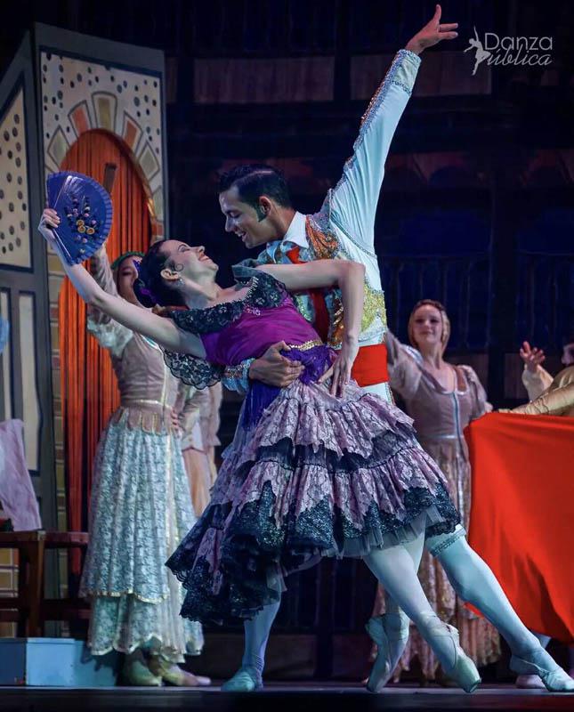 Su partenaire, el primer bailarín Yankiel Vázquez, fue un Basilio ameno, de soltura, combinando un humor bien medido con una técnica depurada que sostuvo su caracterización de galán simpático. La compenetración entre ambos fue notoria desde el inicio y transitó los tres actos con una complicidad escénica que hizo creíble su historia de amor, sosteniendo el hilo narrativo con profesionalidad.