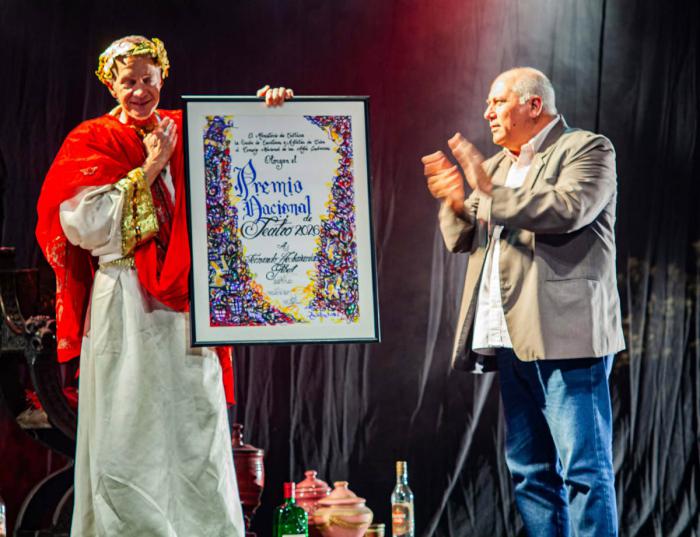 El momento cumbre de la noche llegó con la entrega del lauro a Fernando Hechavarría. Vestido con el indumentario del Julio César de Calígula, obra que interpretara en la década de 1990, este Premio es en reconocimiento a una vida de entrega a las tablas, justo en medio de la energía y la vitalidad de quienes serán el relevo.