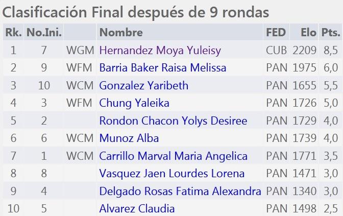 Como Yuleisy y Omar eran invitados al certamen, la condición de titulares de Panamá recayó en la Maestra FIDE Raisa Melissa Barria (1975) y el Maestro Internacional cubano nacionalizado panameño Roberto Carlos Sánchez (2403), monarcas entre mujeres y hombres, respectivamente.
