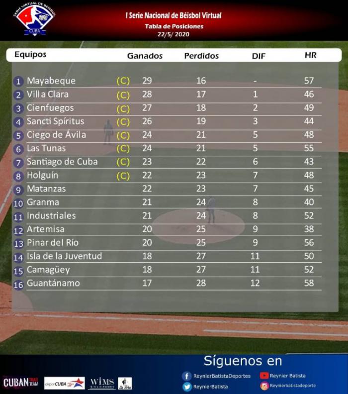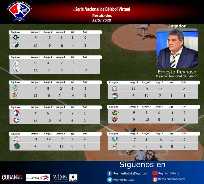 La Serie Virtual, que dejó a la suerte de los dados el desempeño de los 16 equipos del torneo doméstico cubano, se jugó en un todos contra todos a una vuelta y definió sus clasificados el pasado viernes de la mano de Ernesto Reynoso, Director Nacional de Béisbol.