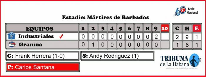 Por Industriales conectaron imparables Joasán Guillén (4-1), Jorge Alomá (4-3), Correa (4-1), Jorge Luis Barcelán (2-1), Raudelín Legrá (4-1), y Dayron Blanco (3-1).