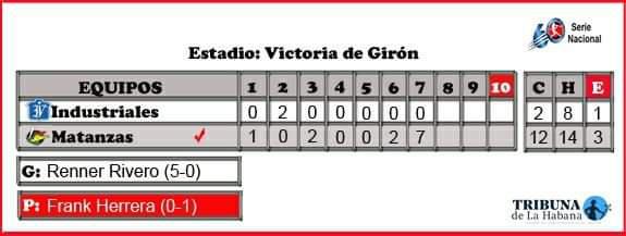 Lo mejor por Industriales fue la forma en que se encuentra el máscara Frank Camilo Morejón, al compilar de 9-8 en sus últimos turnos al bate con seis indiscutibles conectados de forma consecutiva.