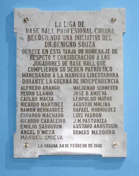 Este lunes en el estadio Latinoamericano de La Habana se develaron dos tarjas rescatadas con los nombres de peloteros inmortales del béisbol cubano que hicieron historia antes del comienzo de nuestras Series Nacionales. La primera de ellas con la inscripción de los electos al Salón de la Fama que jugaron en la Liga Profesional cubana y la otra con los nombres de varios peloteros mambises que alternaron su pasión por este deporte con el deber de luchar por la independencia en los campos de Cuba contra el gobierno español.