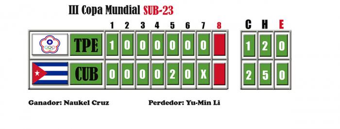 Un jonronazo de Yuddiel González con un compañero a bordo le dio a Cuba su primera victoria en esta III Copa Mundial de béisbol categoría sub 23, a manos de la escuadra de China Taipéi, invicta hasta ese momento en dos salidas.