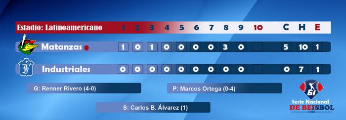Industriales perdió un par de buenas oportunidades en el cuarto y en el sexto inning cuando congestionaron los sacos, pero Oscar Valdés, el hombre que mejor por ciento tiene en el campeonato empujando a hombres en posición anotadora, no pudo producir y cedió el tercer out en ambas ocasiones.