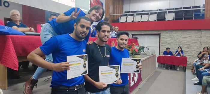 El segundo momento de la clausura donde la emoción podía palparse, fue cuando Abraham Reyes Conde, Andy Goligán Cabana, y Eider Estévez Navarro, los tres delegados de la UCCFD, al X Congreso Nacional de la FEU recibieron un diploma de reconocimiento de manos del rector de la universidad y de la presidenta nacional de la FEU.